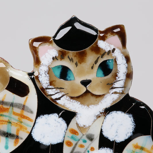 Ganjincho Cat Brooch Set〈Yoshitsune & Benkei〉|Cloisonné Artisan Jewelry | Handmade Cloisonné Enamel Jewelry | Japanese Artisan Accessory