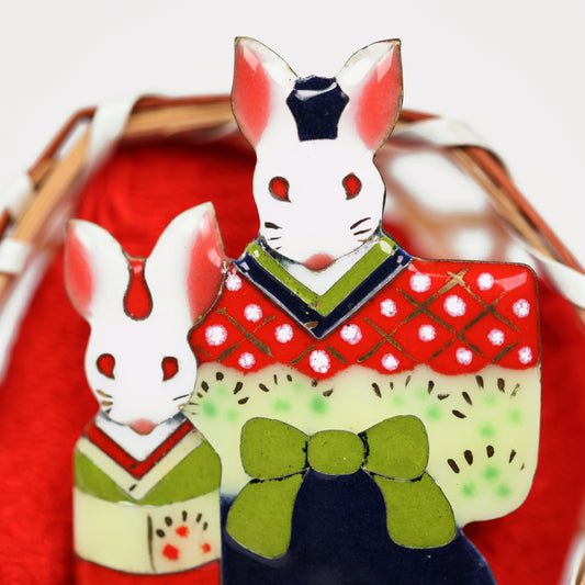 Cloisonne Rabbit Hina Brooch, Usagi Hina Brooch by Keiko Sera, Free Shipping