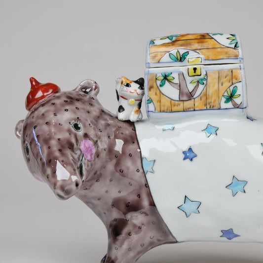 Ceramic Baku & Cat Figure set, Charming Duo of Dreams and Whimsy, Made in Japan, Free shipping