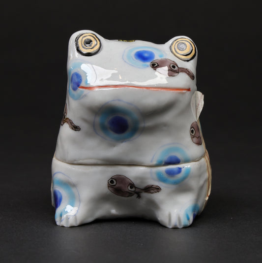 Handcrafted Japanese Frog & Tadpole Incense Holder – Porcelain Art Box with Whimsical Design