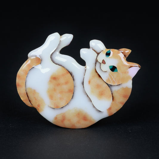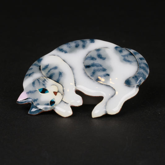 Enamel Cat Brooch | Shippoyaki | Handcrafted Art Jewelry | Japanese cloisonné | Japanese Cloisonné Cat Pin | Artisan Cat Brooch from Japan