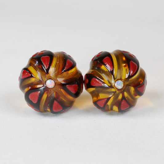 Amber Lacquer Urushi Earrings, Earrings, Japanese Lacquer Earrings, Mabe Pearl Earrings, Lacquer Makie Earrings, Free shipping