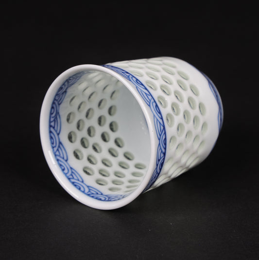 Japanese Crystal Carved Sake Cup | Seigaiha Wave Porcelain | Hasami Ware | Japanese sake cup | Seigaiha pattern | Made in Japan