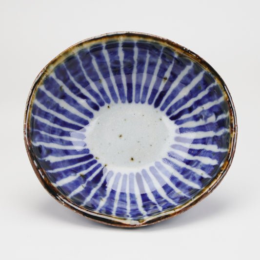 Hand-Painted Indigo Stripes|Iron-Rimmed Small Round Bowl (Hasami Ware) | Hasami Ware Small Bow