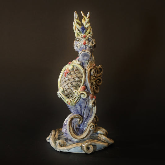 Seahorse figurine, Dragon figurine, Ceramic figurine, Seahorse lucky charm, Free Shipping, Seahorse ceramic figurine, Aqua dragon auspicious ornament