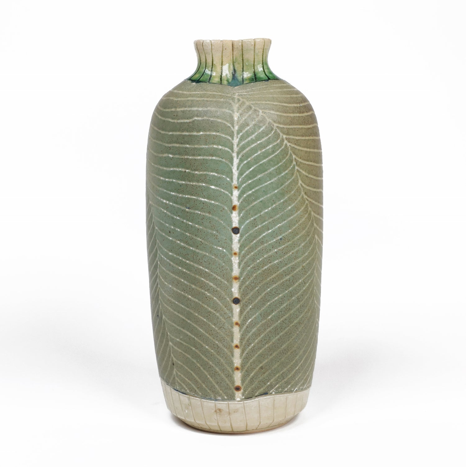 Vase, veined pattern, Leaves pattern vase, Japanese handmade vase, made in Japan, Free shipping