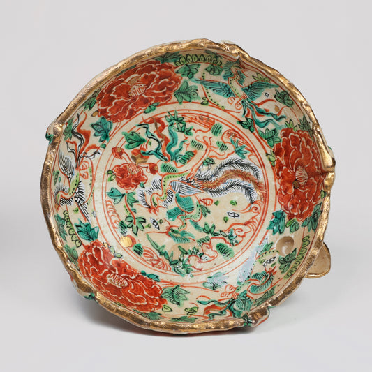 Mino pottery, Katakuchi serving dish, Japanese Mino-yaki, Iroe Kinsai Botan, Japanese Phoenix, Free shipping