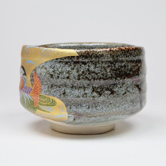 Kutani Yaki Gold-colored matcha bowl, Mandarin duck matcha bowl, Japanese Matcha Bowl, Mandarin duck motif, Mandarin duck design, Tea Utensils, Free shipping