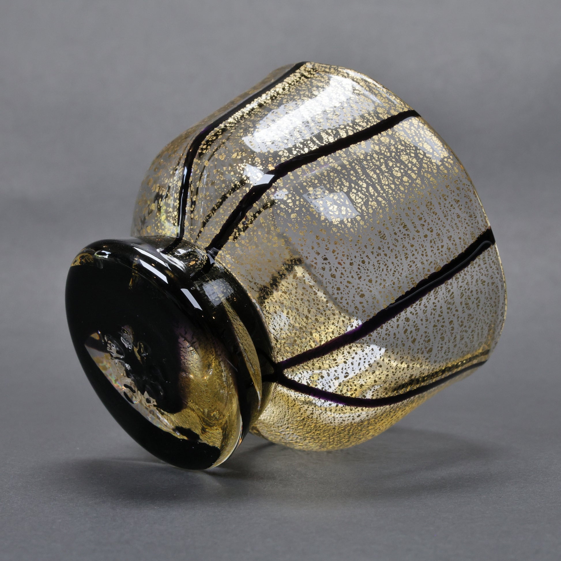 The gold leaf used is thick enough to withstand the intense heat of glassmaking, creating a luminous finish that subtly changes with light and use.
