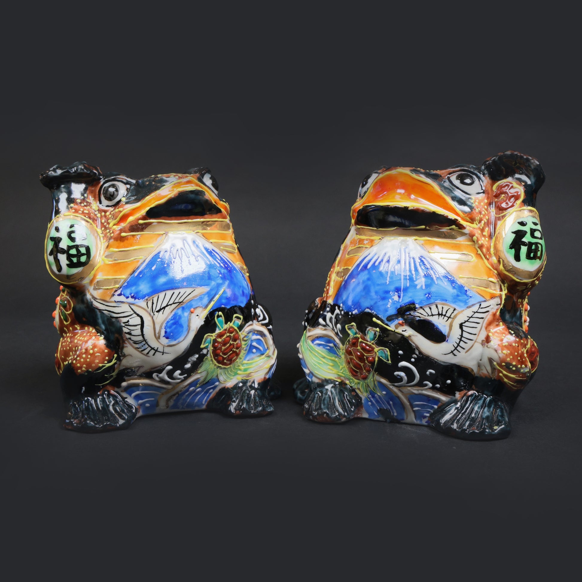 A-Un Lucky Frog Set|Kutani Porcelain Good Fortune Frogs (Black × Black Pair) | Kutani Fortune Frogs Set | Made in Japan
