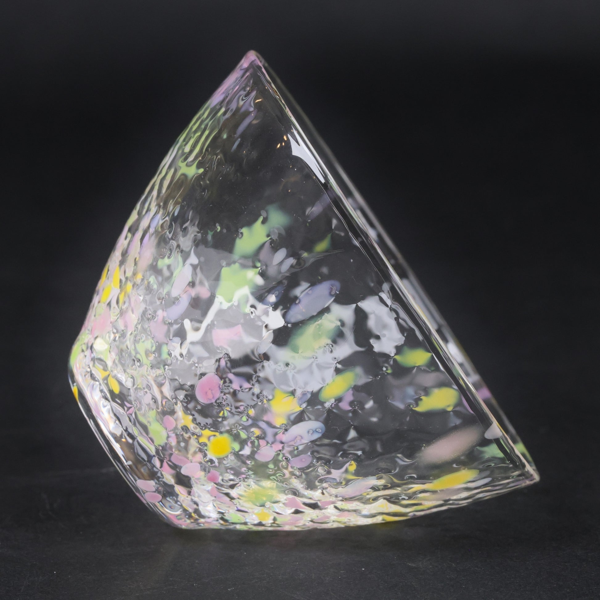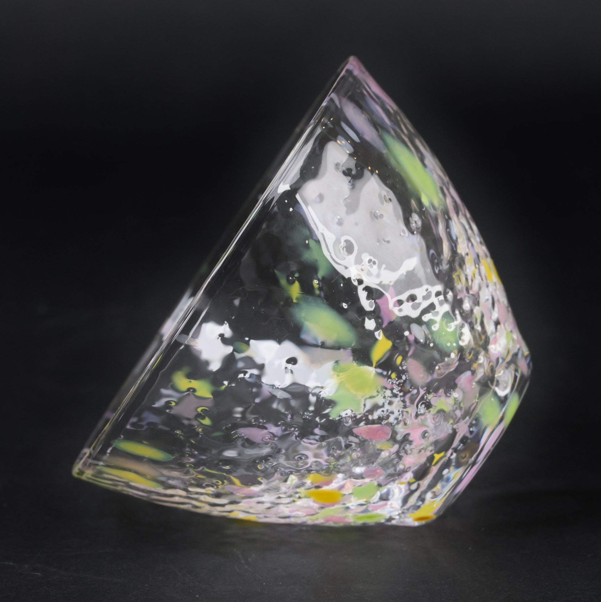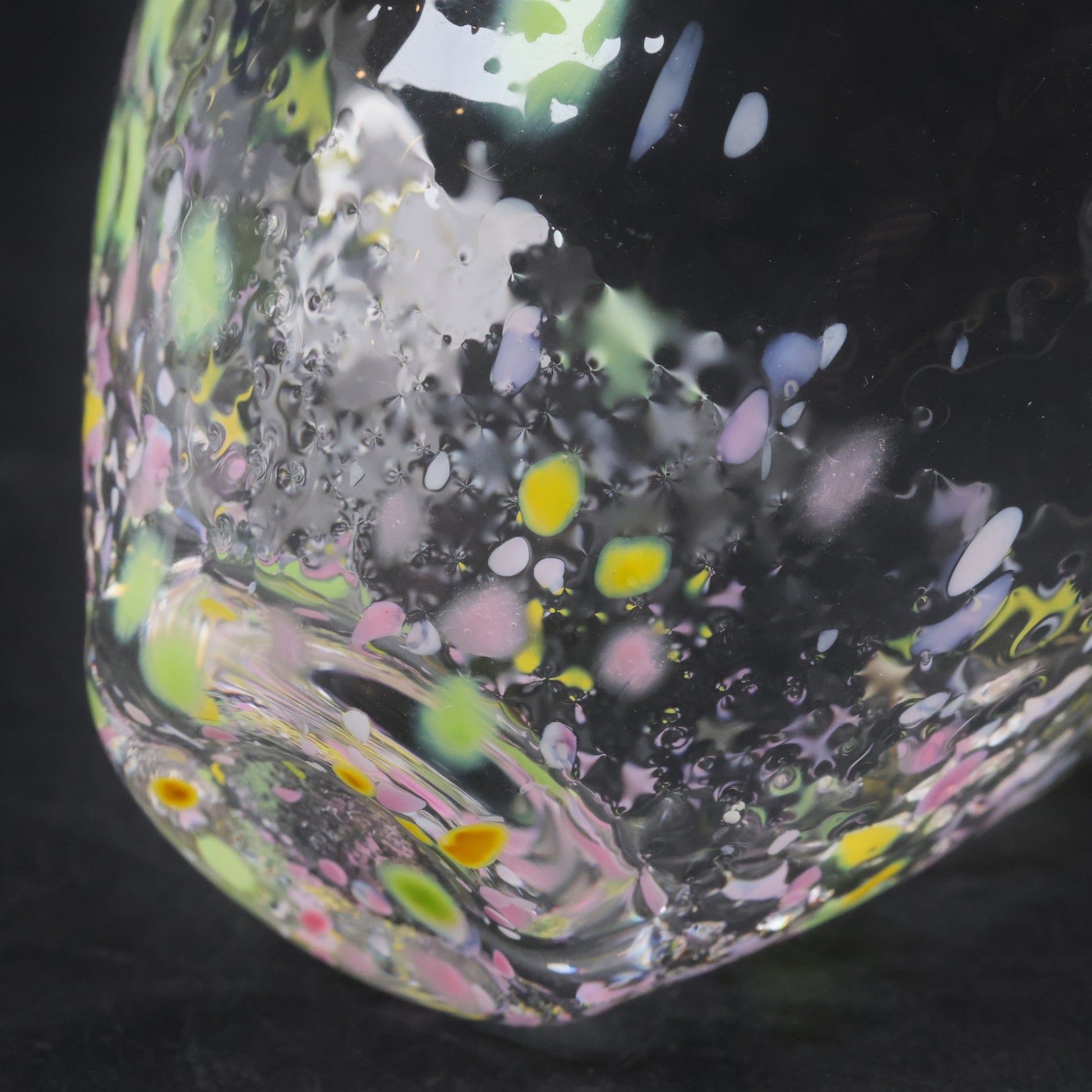 Each guinomi is handmade in Tokyo using clear soda glass infused with colorful glass frit. As light passes through, the cups sparkle like a kaleidoscope, creating a joyful and refined drinking experience. The set includes three harmonious colors—