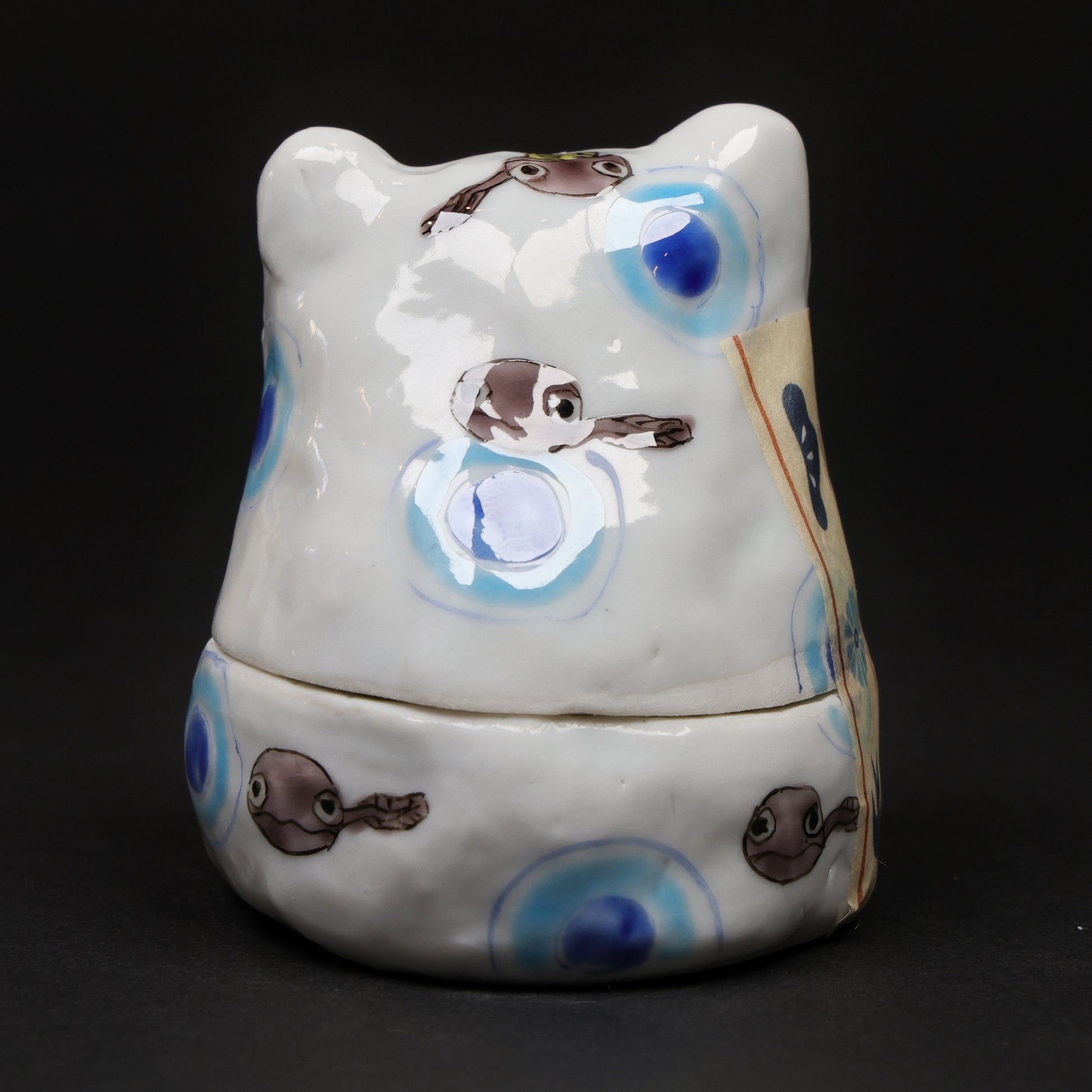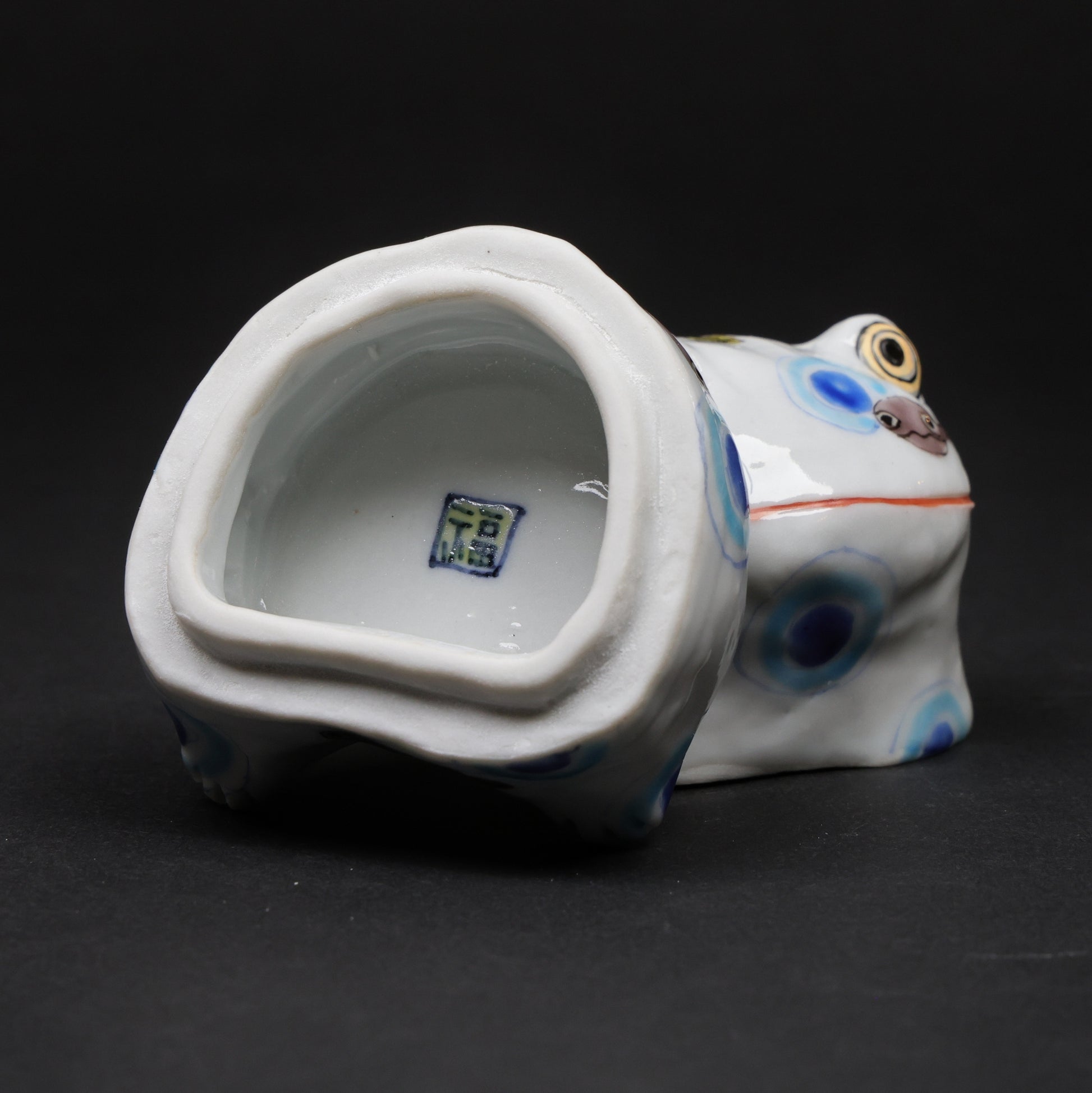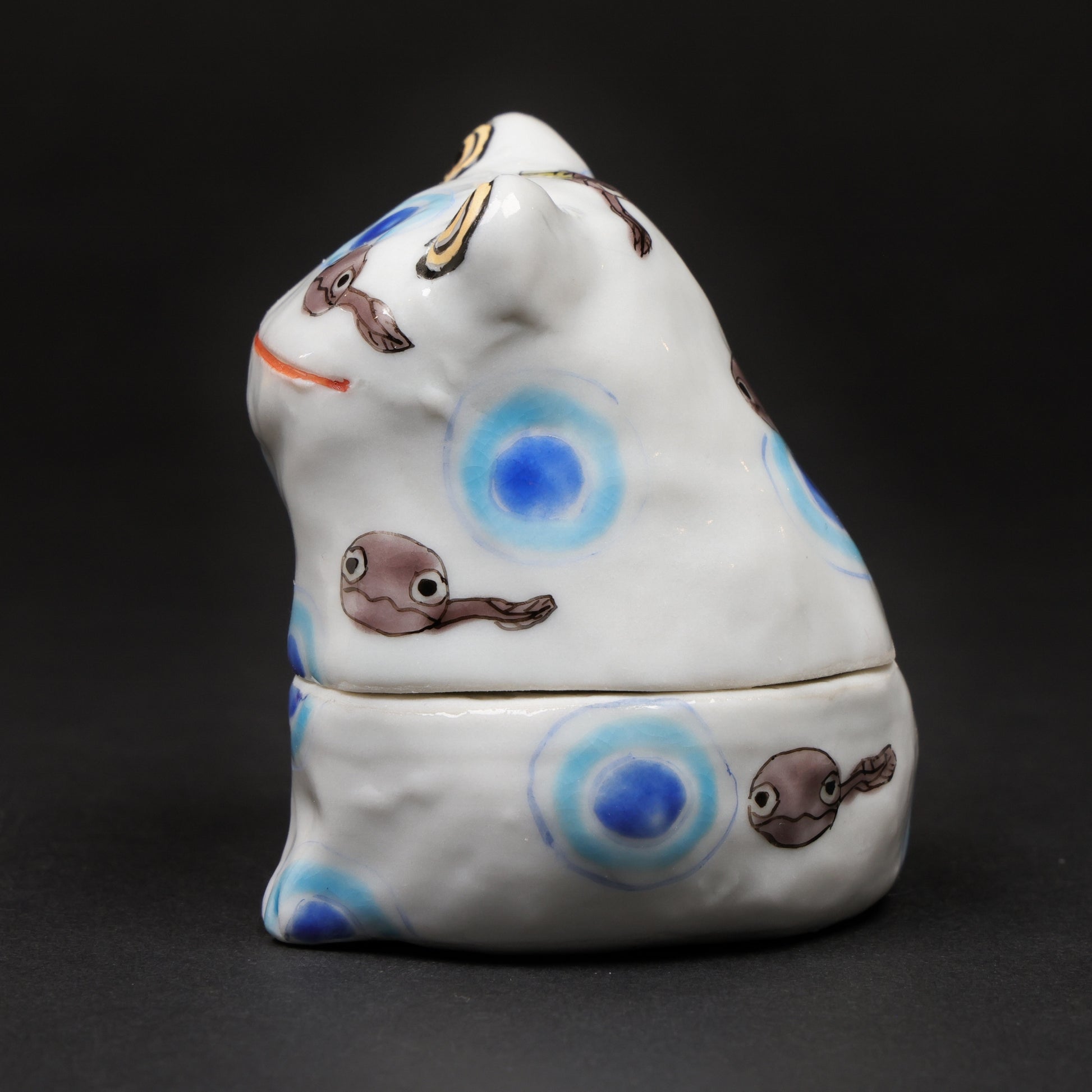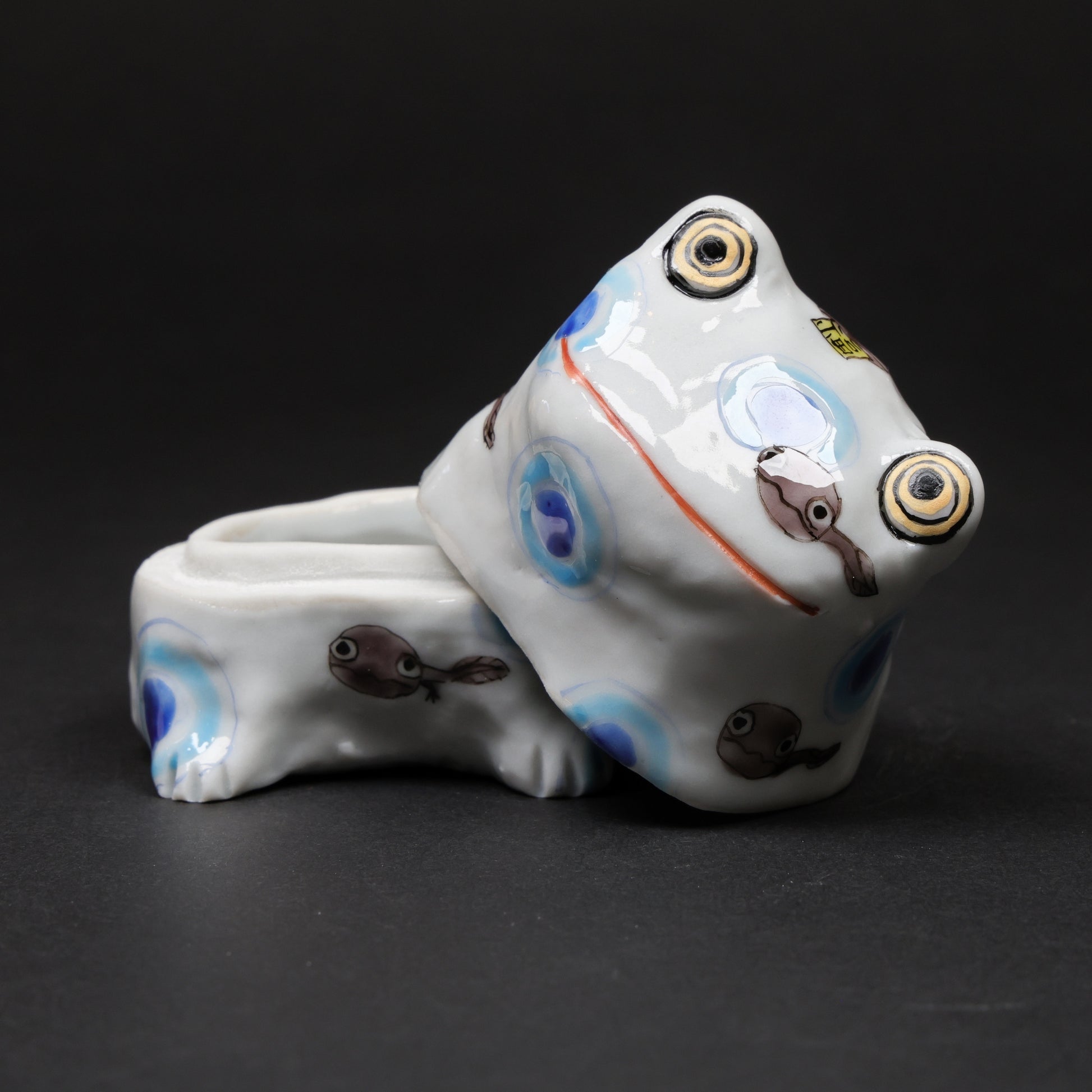 Handcrafted Japanese Frog & Tadpole Incense Holder – Porcelain Art Box with Whimsical Design