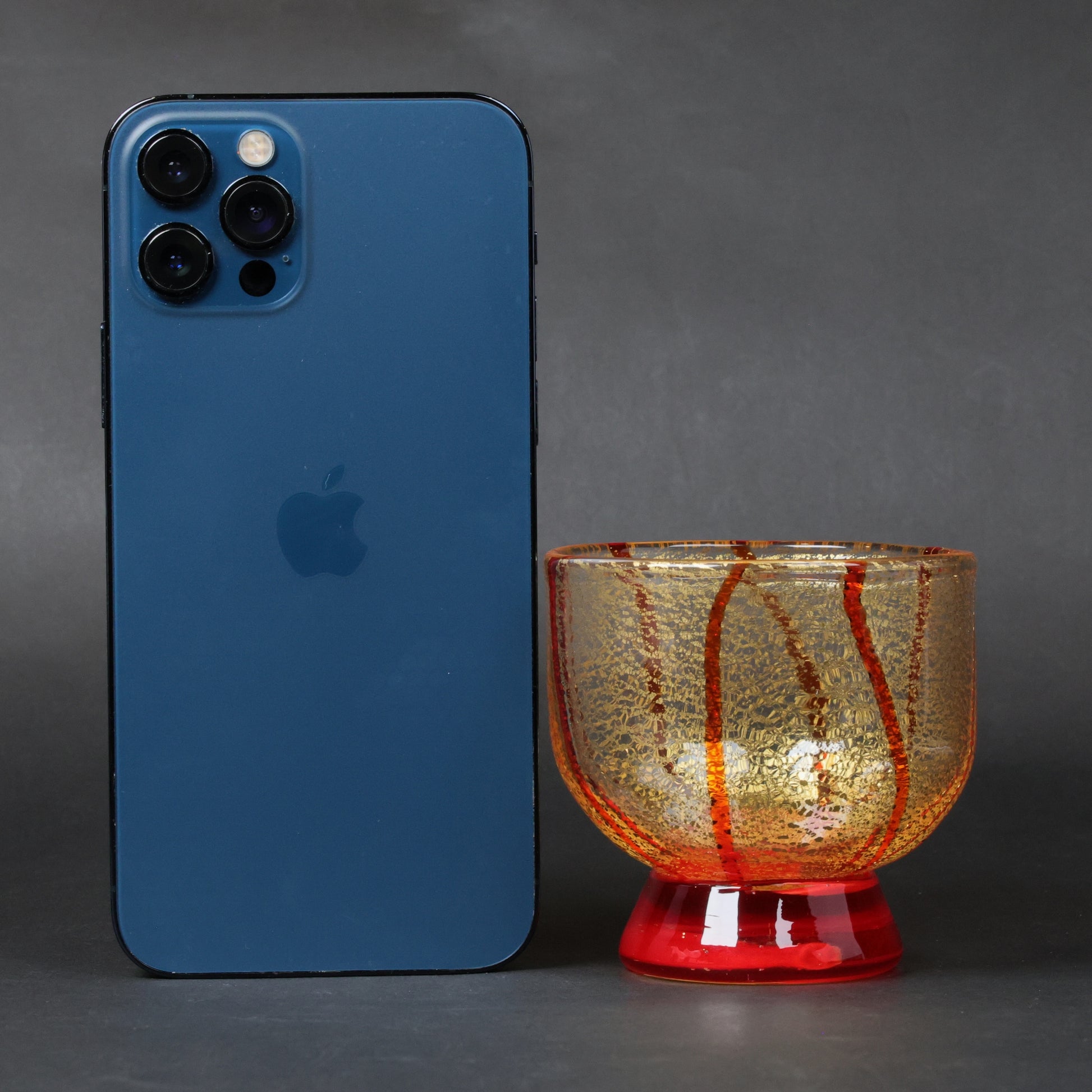 Luxurious thick Kanazawa gold leaf is carefully applied by artisan Shinichi Yamazaki, forming a rich contrast against the deep red glass.